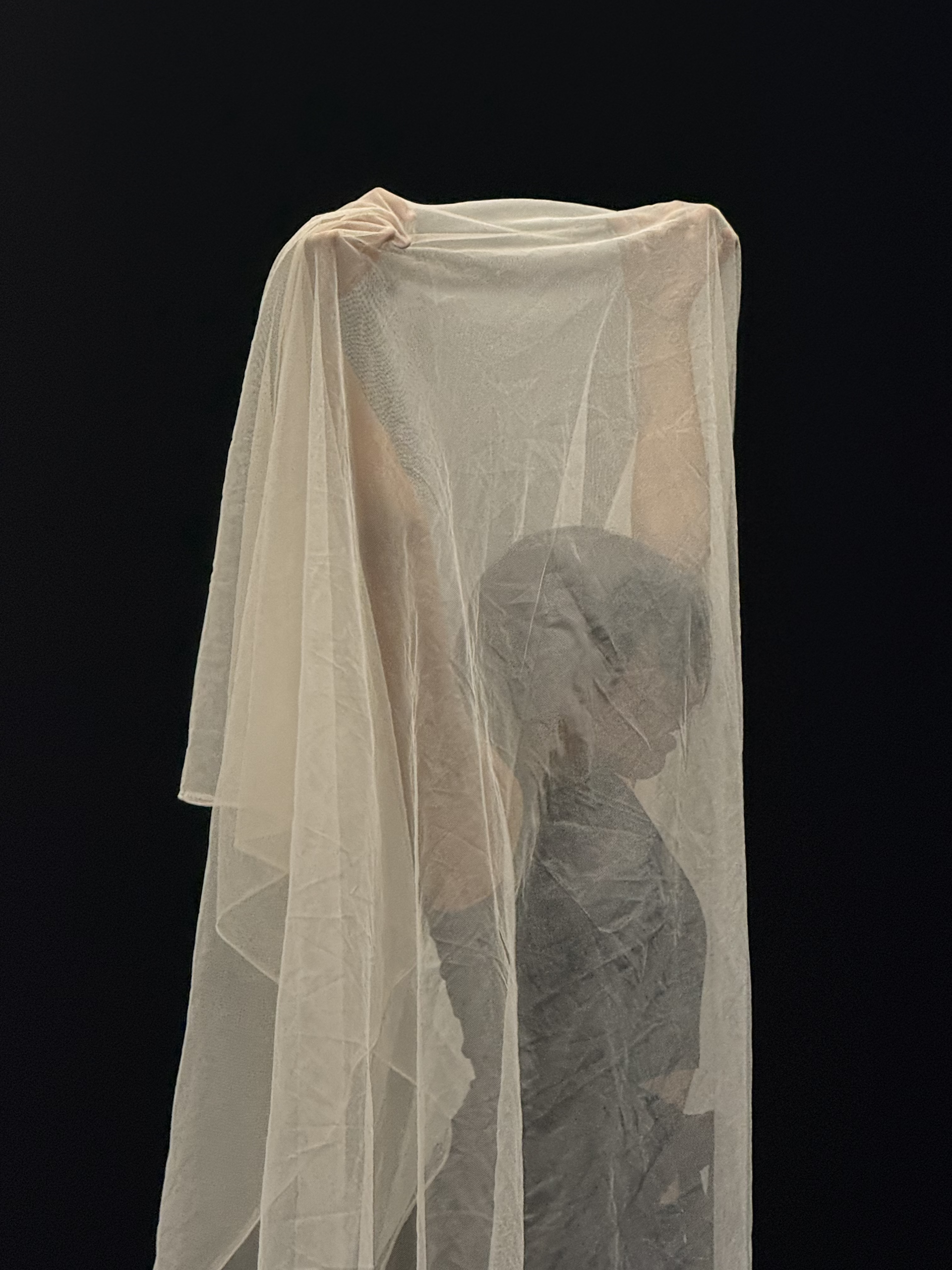 L’œuvre interroge ce glissement : la perte des gestes de soin, l’atténuation de la charge symbolique et la manière dont un rituel autrefois profondément communautaire, transmis et porté par la famille, se transforme en une performance commercialisée, souvent coûteuse, formatée et répétée. Le sens symbolique diminue, tandis que l’esthétique « vendeuse » prend e dessus.